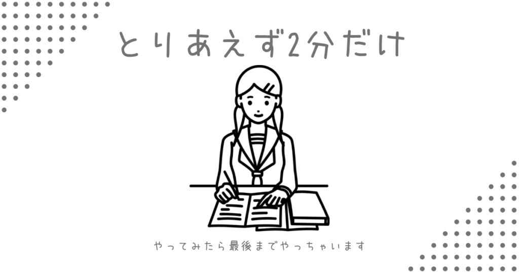 そんな時は、とりあえず2分だけやってみること。