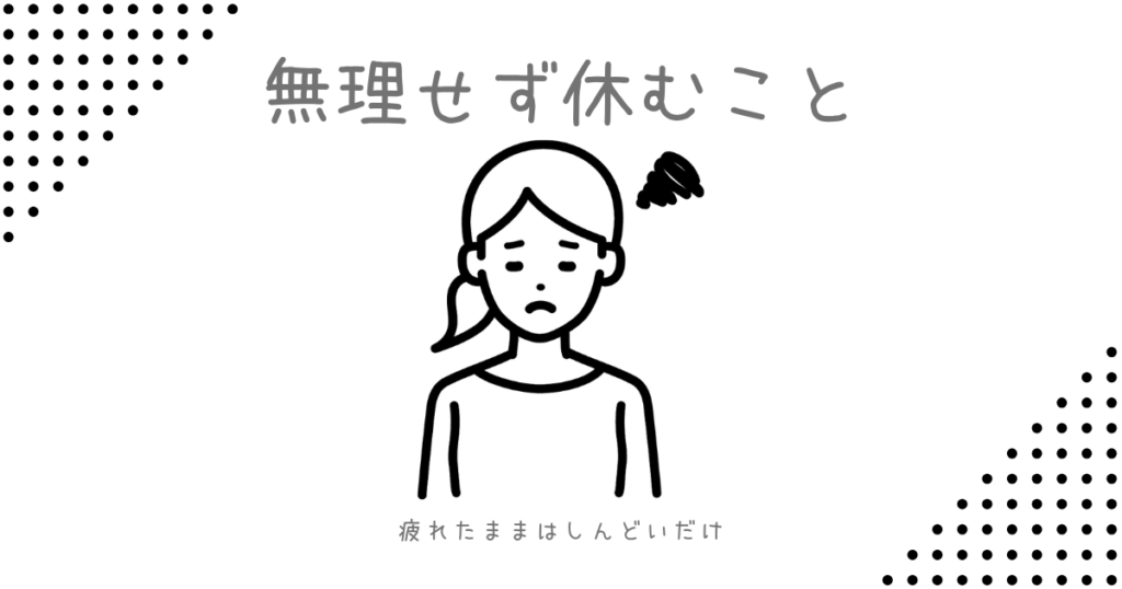 私が普段の生活で注意していることは「無理せず休むこと」